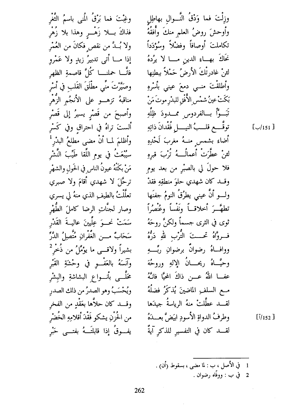 بكت عين شمس الأفق للبدر موت من ... مناقبه تزهو على الأنجم الزّهر