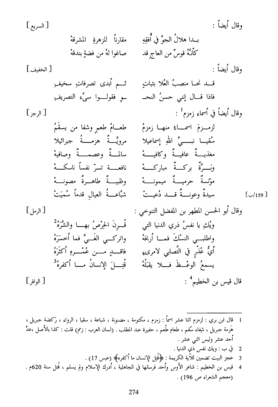 [3] عجز البيت تضمين للآية الكريمة: قُتِلَ الْإِنْسانُ ما أَكْفَرَهُ