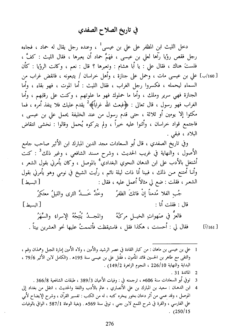 [3] توفي أبو السعادات سنة 606 هـ، ترجمته في: وفيات الأعيان 3/389، طبقات الشافعية 8/366.