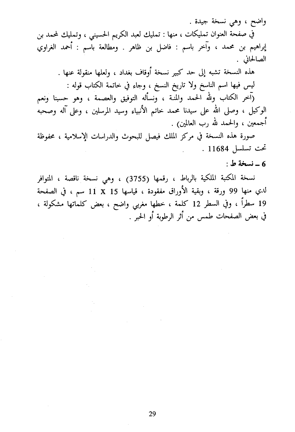 صورة هذه النسخة في مركز الملك فيصل للبحوث والدراسات الإسلامية، محفوظة تحت تسلسل 11684.