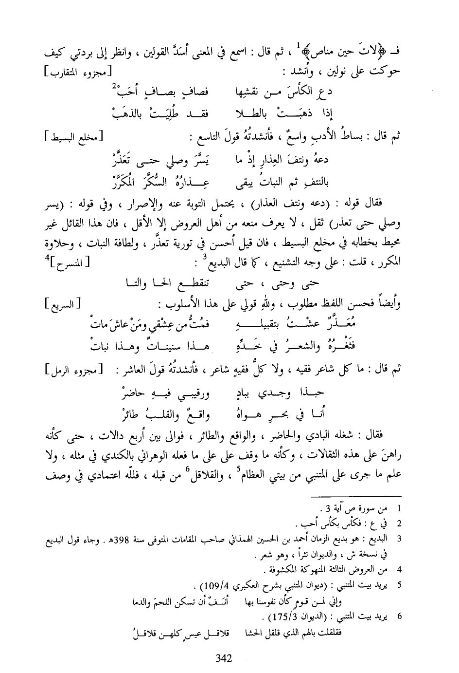 [5] يريد بيت المتنبي: (ديوان المتنبي بشرح العكبري 4/109) .