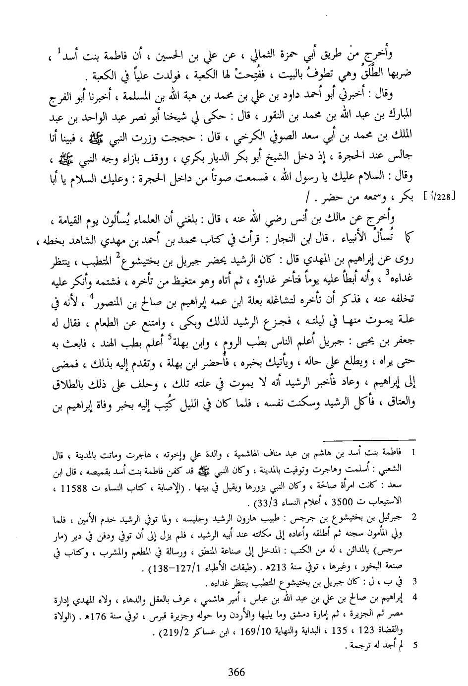 وأخرج عن مالك بن أنس رضي الله عنه، قال: بلغني أن العلماء يسألون يوم القيامة، كما تسأل الأنبياء. قال ابن النجار: قرأت في كتاب محمد بن أحمد بن مهدي الشاهد بخطه، روى عن إبراهيم بن المهدي قال: كان الرشيد يحضر جبريل بن بختيشوع [2] المتطبب، ينتظر غداءه [3] ، وأنه أبطأ عليه يوما فتأخر غداؤه، ثم أتاه وهو متغيظ من تأخره، فشتمه وأنكر عليه تخلفه عنه، فذكر أن تأخره لتشاغله بعلة ابن عمه إبراهيم بن صالح بن المنصور [4] ، لأنه في علة يموت منها في ليلته، فجزع الرشيد لذلك وبكى، وامتنع عن الطعام، فقال له جعفر بن يحيى: جبريل أعلم الناس بطب الروم، وابن بهلة [5] أعلم بطب الهند، فابعث به حتى يراه، ويطلع على حاله، ويأتيك بخبره، فأحضر ابن بهلة، وتقدم إليه بذلك، فمضى إلى إبراهيم، وعاد فأخبر الرشيد أنه لا يموت في علته تلك، وحلف على ذلك بالطلاق والعتاق، فأكل الرشيد وسكنت نفسه، فلما كان في الليل كتب إليه بخبر وفاة إبراهيم بن