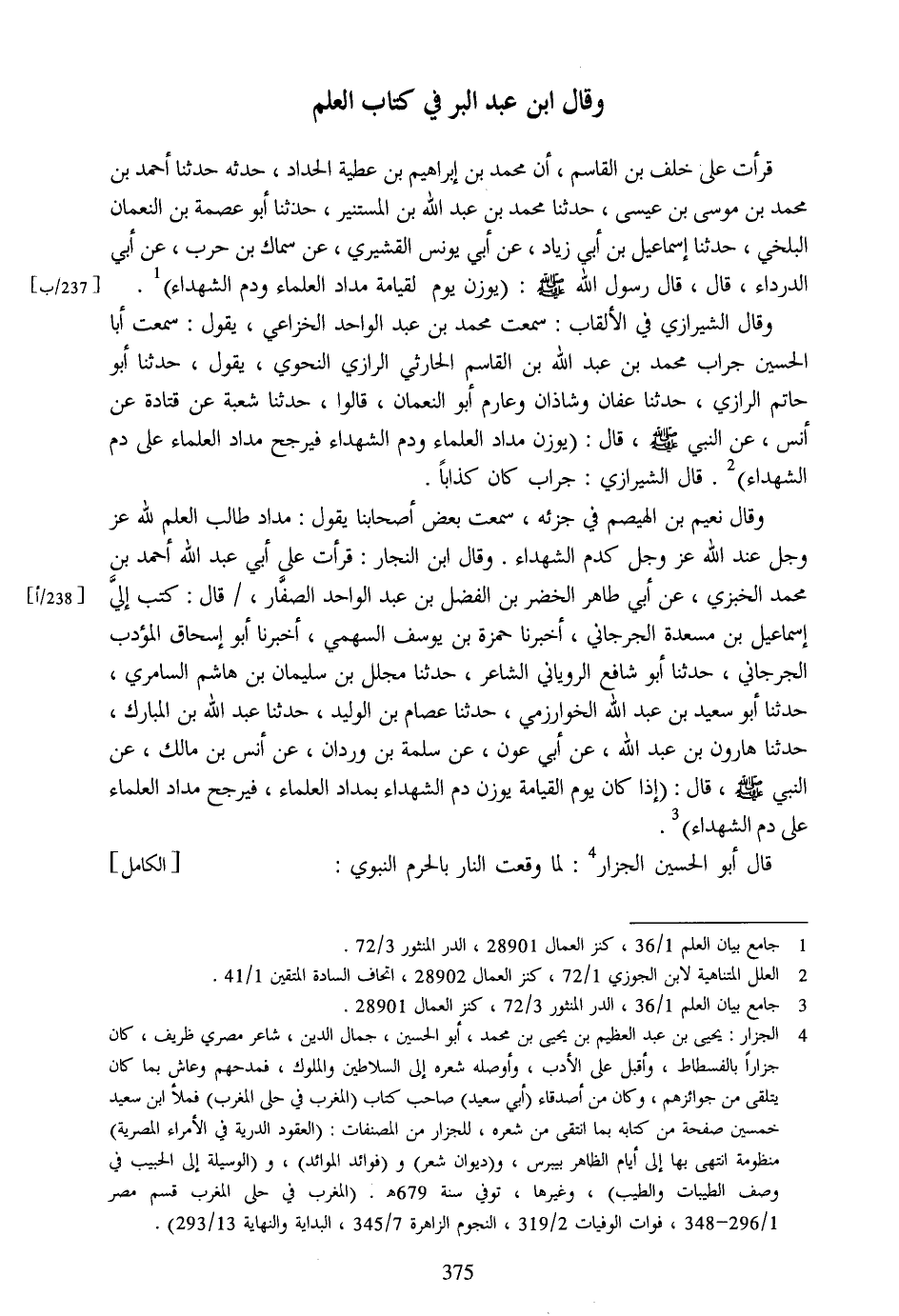 [3] جامع بيان العلم 1/36، الدر المنثور 3/72، كنز العمال 28901.