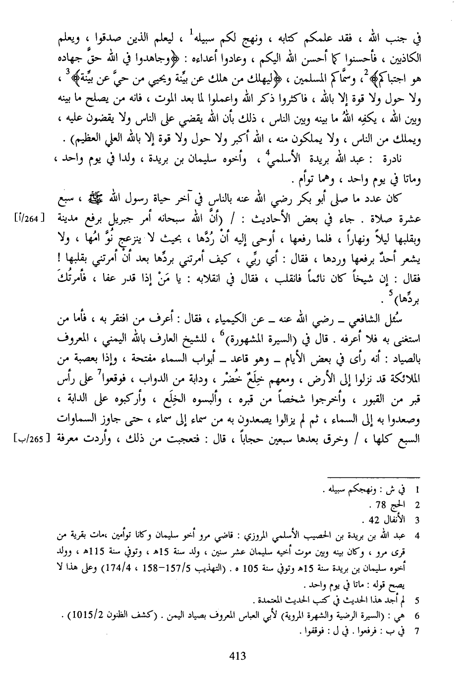 [4] عبد الله بن بريدة بن الحصيب الأسلمي المروزي: قاضي مرو أخو سليمان وكانا توأمين، مات بقرية من قرى مرو، وكان بينه وبين موت أخيه سليمان عشر سنين، ولد سنة 15 هـ، وتوفي سنة 115 هـ، وولد أخوه سليمان بن بريدة سنة 15 هـ وتوفي سنة 105 هـ. (التهذيب 5/157- 158، 4/174) وعلى هذا لا يصح قوله: ماتا في يوم واحد.