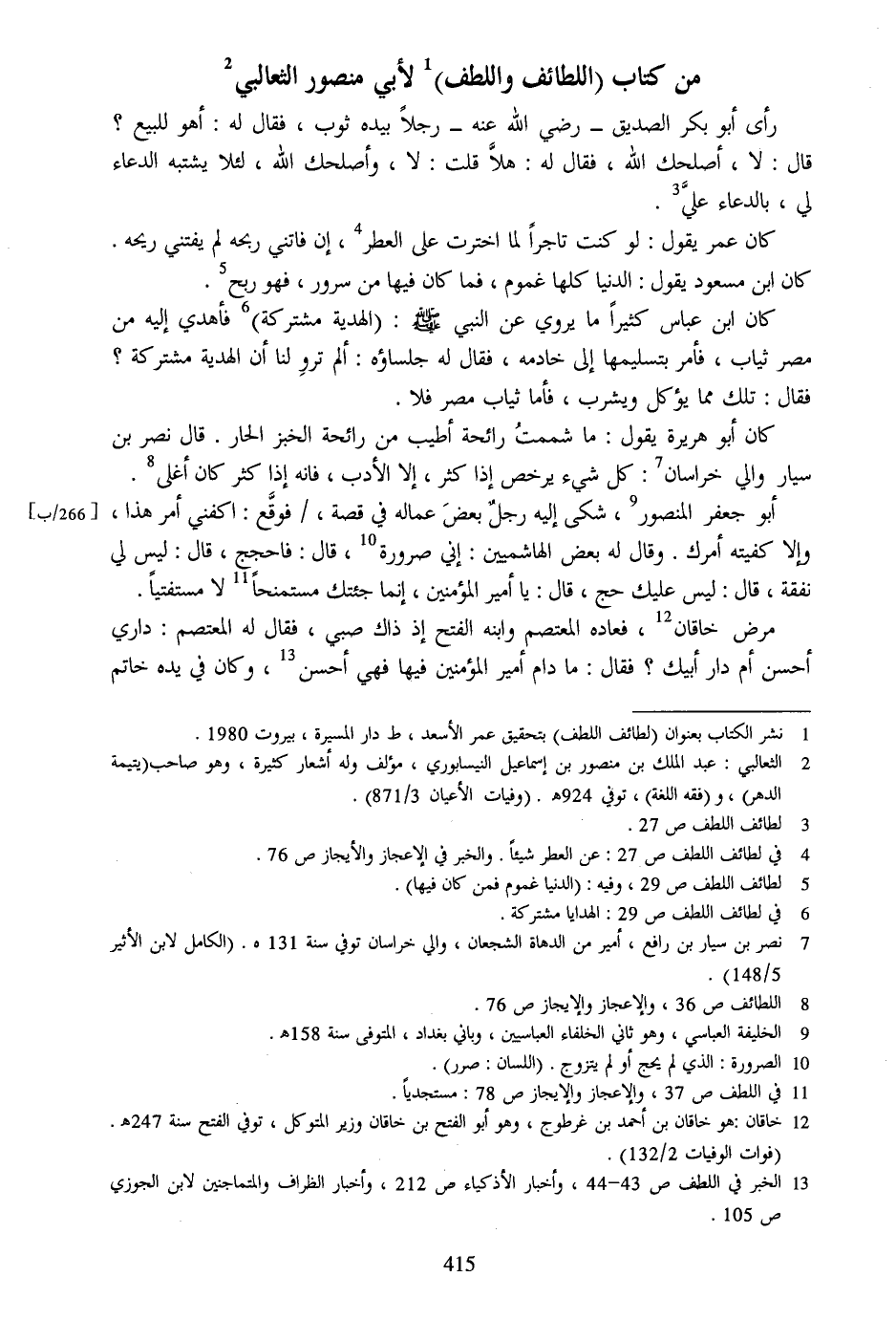من كتاب (اللطائف واللطف) [1] لأبي منصور الثعالبي