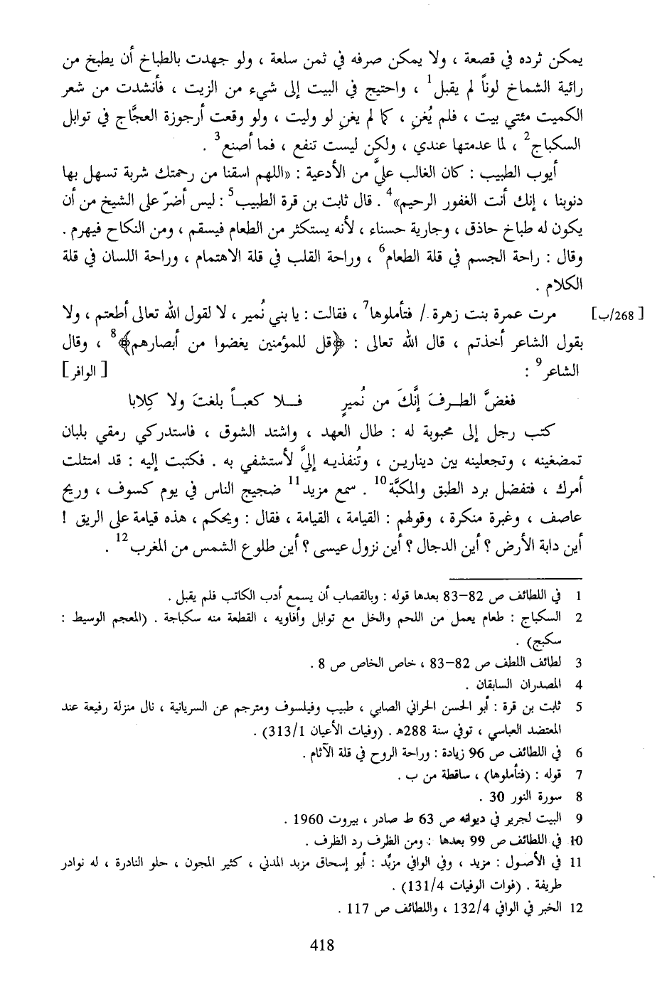 [10] في اللطائف ص 99 بعدها: ومن الظرف رد الظرف.