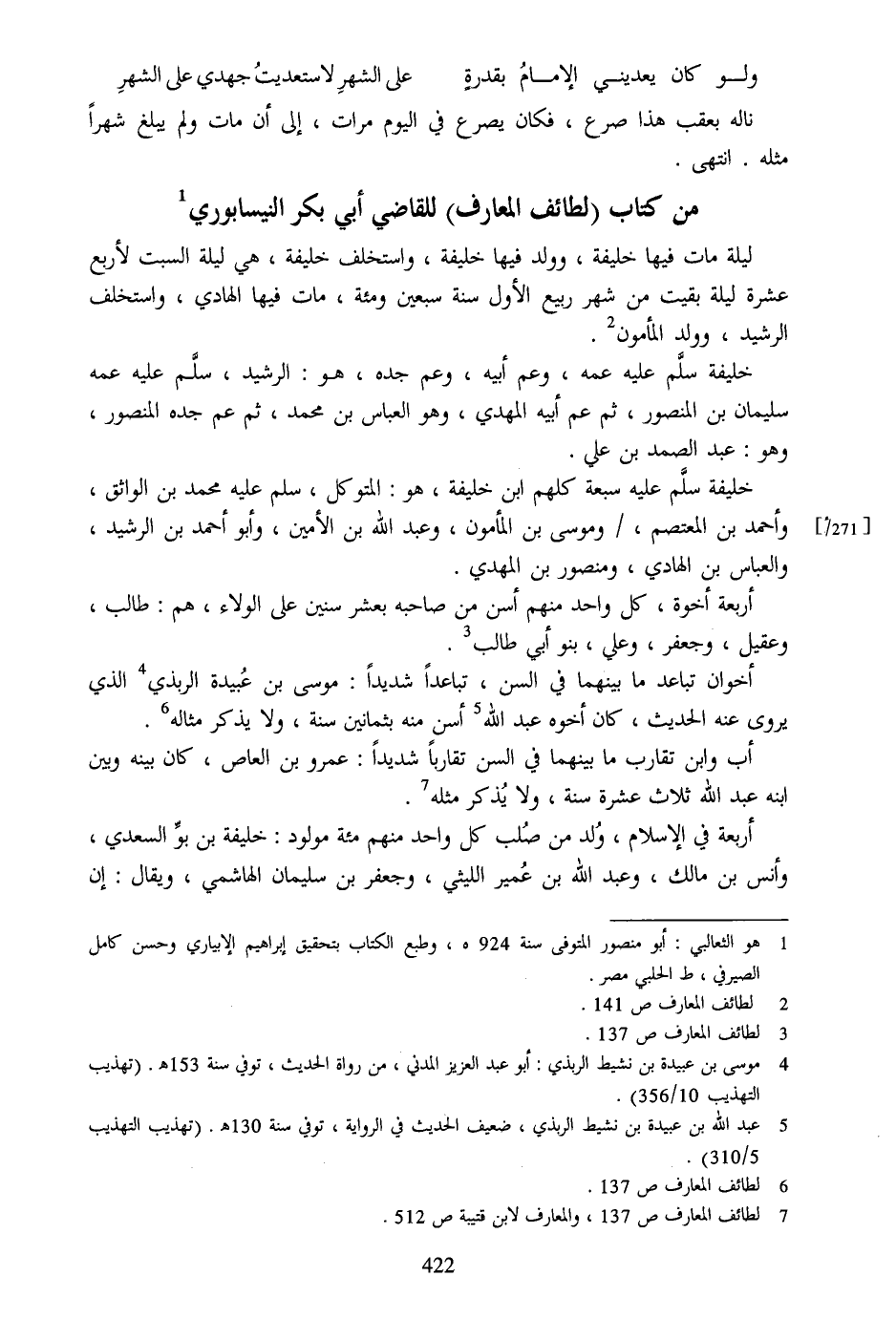 [7] لطائف المعارف ص 137، والمعارف لابن قتيبة ص 512.