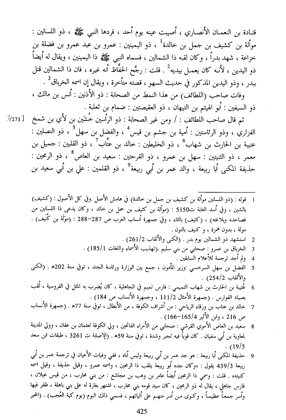 ثم قال صاحب اللطائف:/ ومن غير الصحابة: ذو الرأسين خشين بن لأي بن شمخ الفزاري، وذو الرئاستين: أمية بن جشم بن قيس [4] ، والفضل بن سهل [5] ، ذو النصلين: