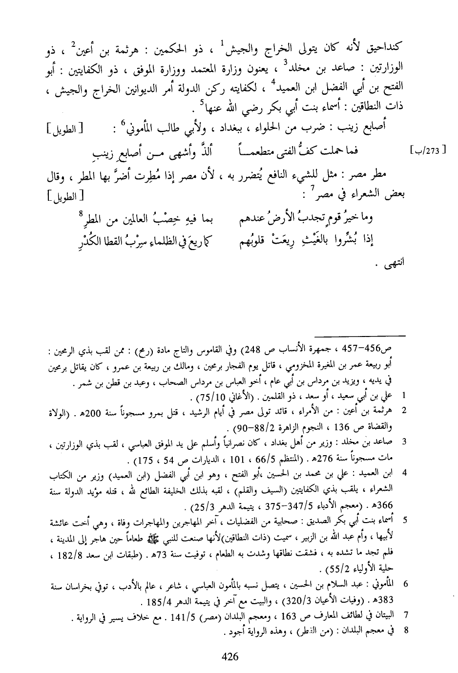 [7] البيتان في لطائف المعارف ص 163، ومعجم البلدان (مصر) 5/141. مع خلاف يسير في الرواية.