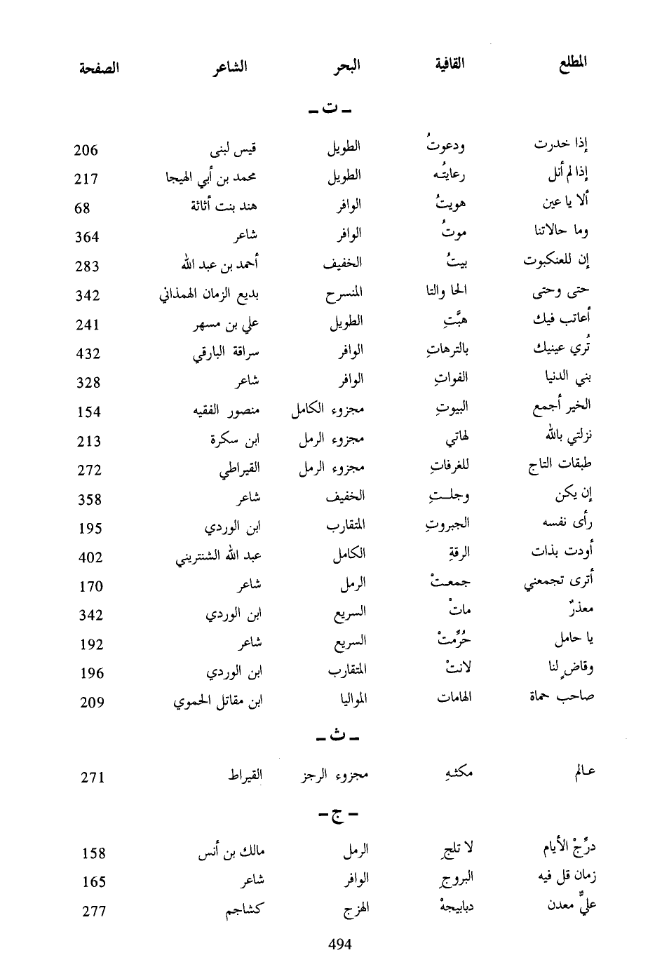 طبقات التاج: للغرفات: مجزوء الرمل: القيراطي: 272
