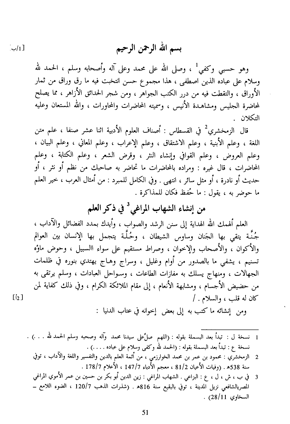 من إنشاء الشهاب المراغي [3] في ذكر العلم