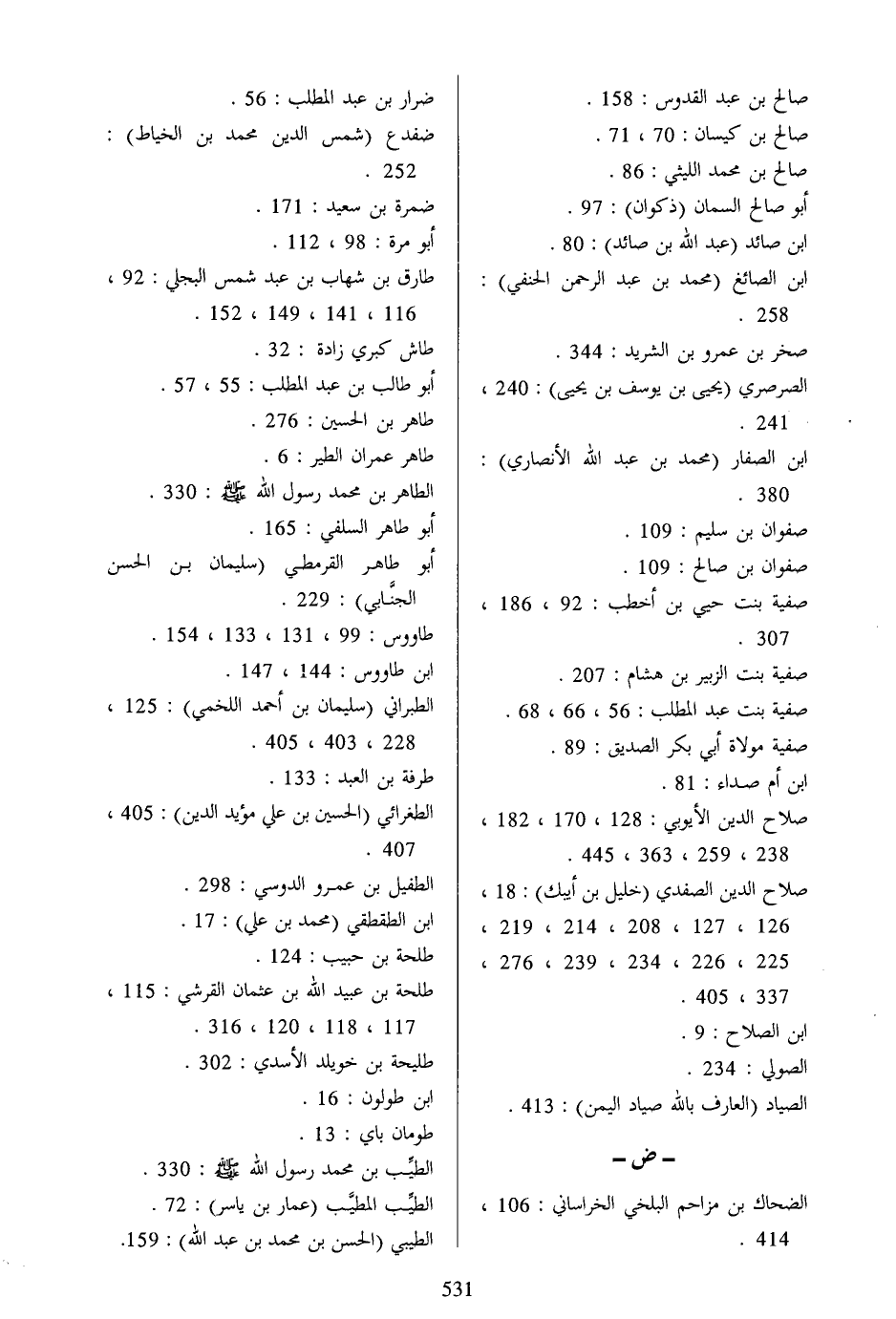 صلاح الدين الصفدي (خليل بن أيبك) : 18، 126، 127، 208، 214، 219، 225، 226، 234، 239، 276، 337، 405.
