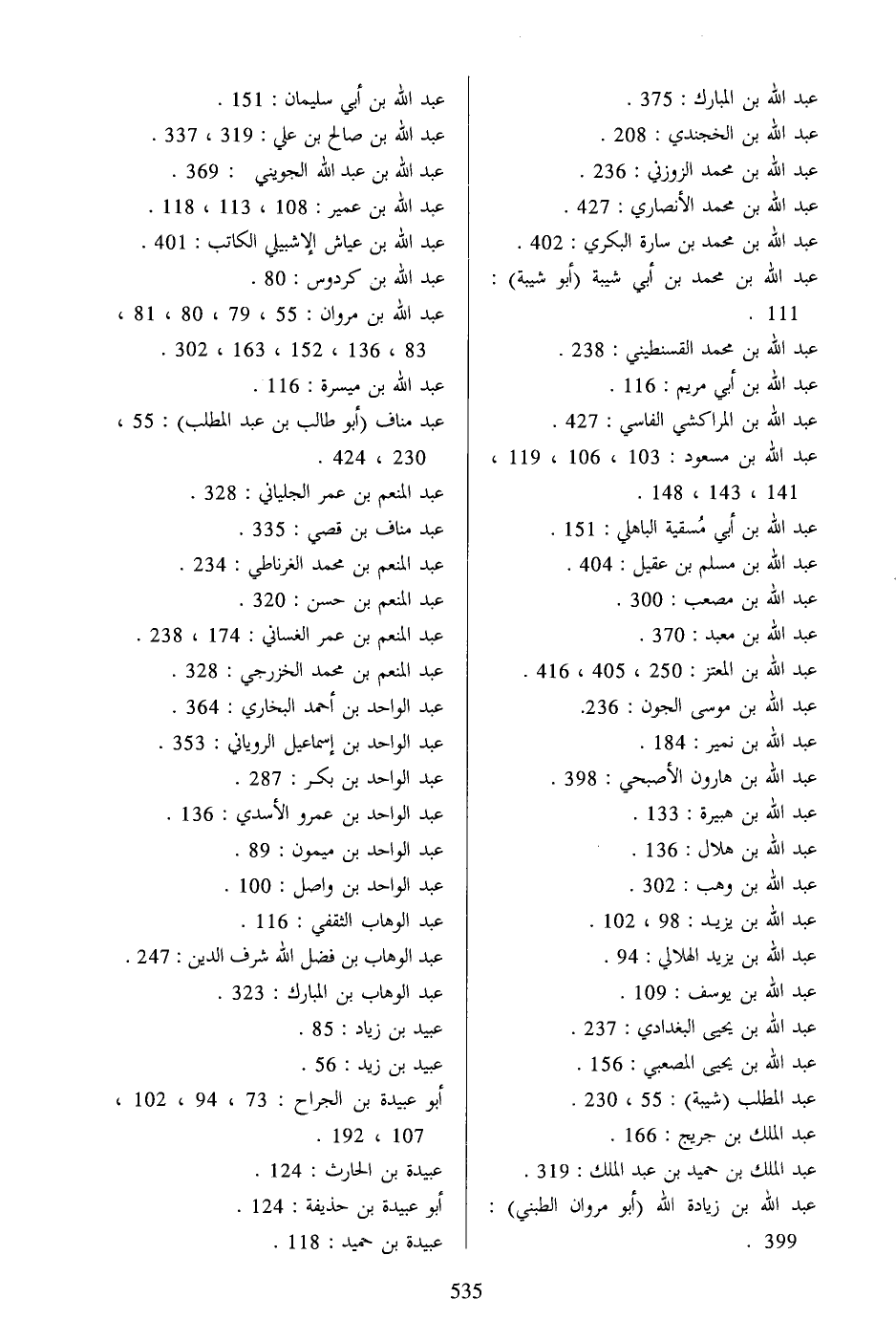 عبد الله بن مروان: 55، 79، 80، 81، 83، 136، 152، 163، 302.