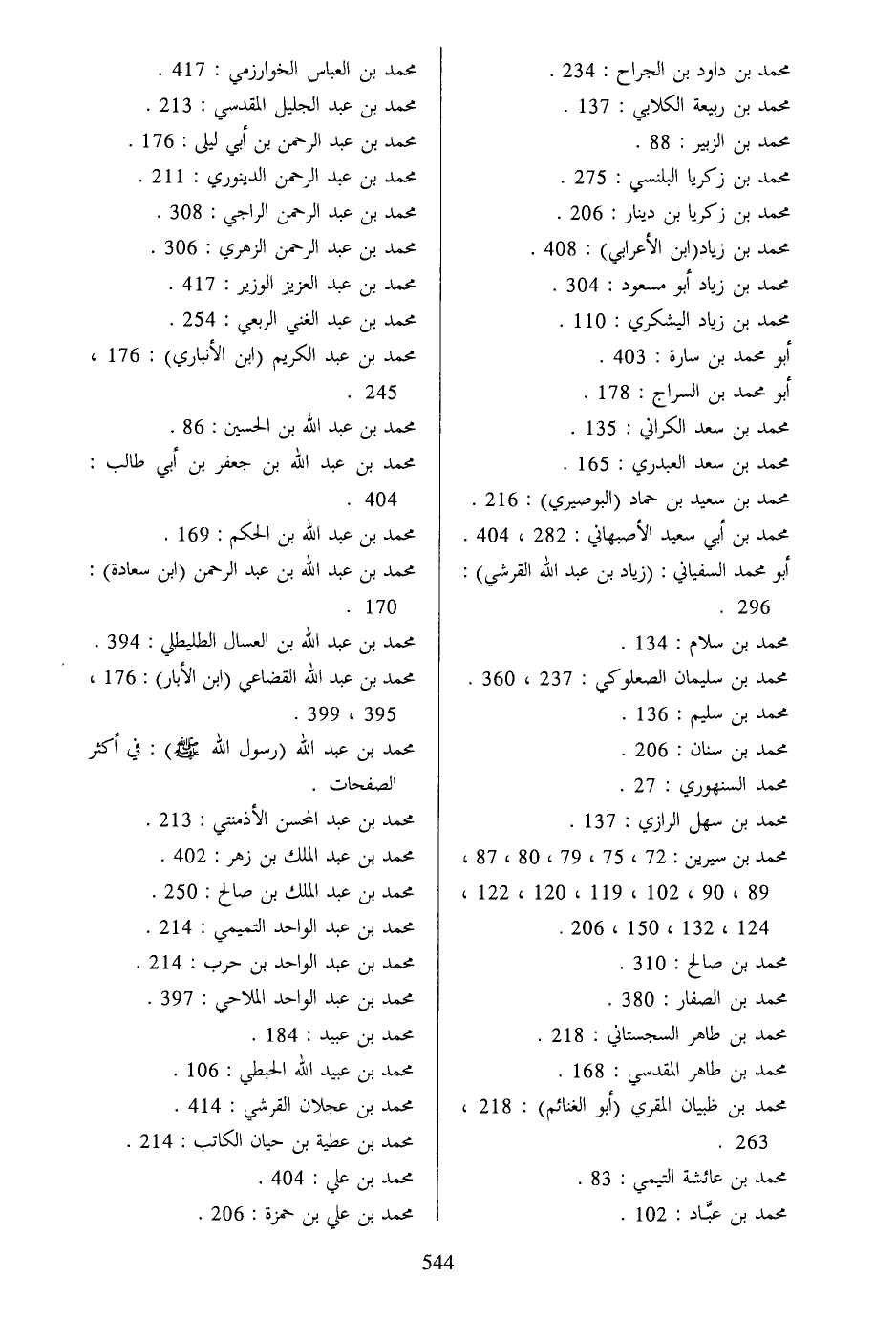 محمد بن زياد (ابن الأعرابي) : 408.