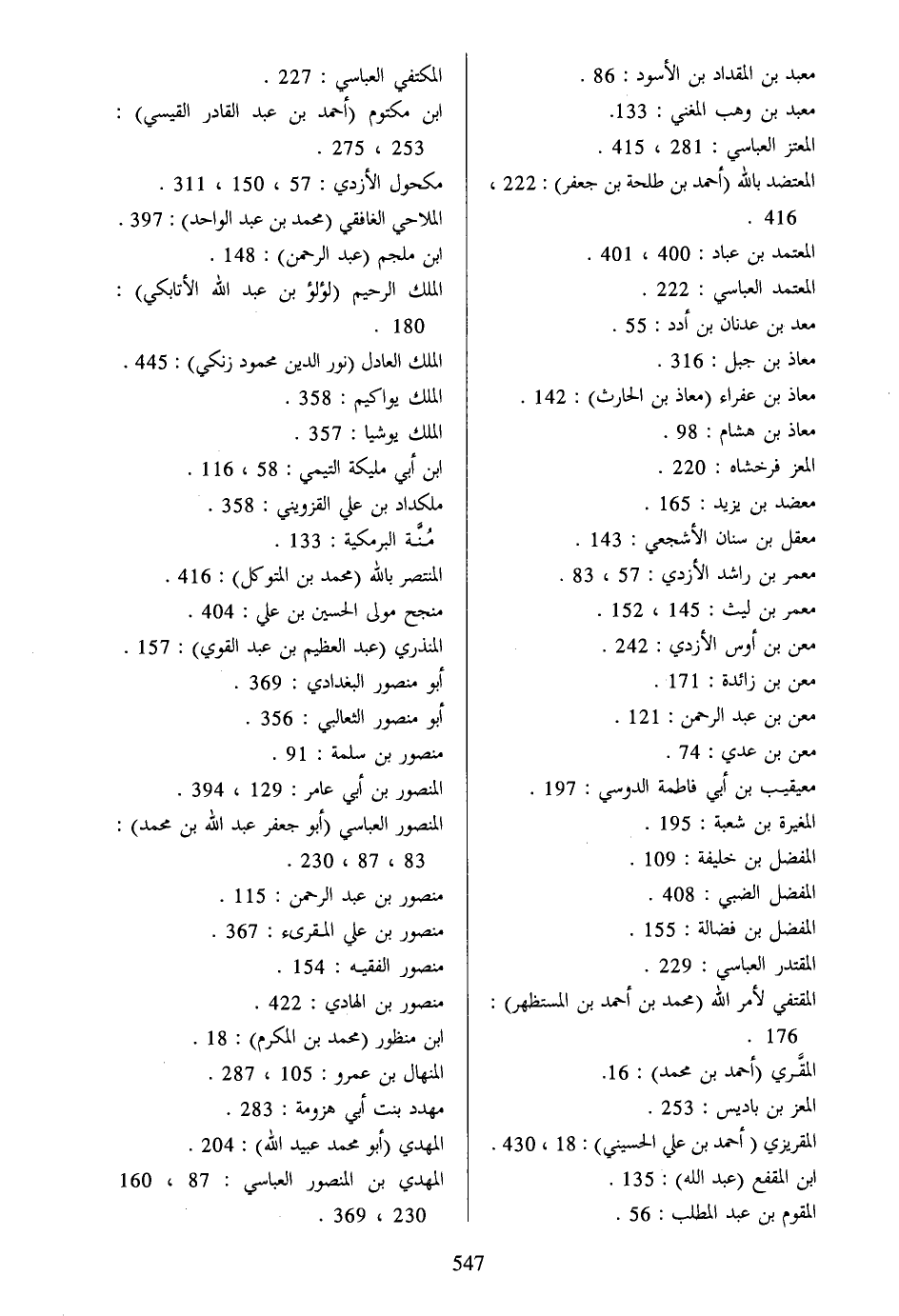 المعتضد بالله (أحمد بن طلحة بن جعفر) : 222، 416.
