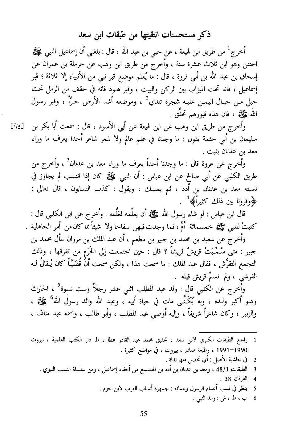 [1] راجع الطبقات الكبري لابن سعد، تحقيق محمد عبد القادر عطا، ط دار الكتب العلمية، بيروت 1990- 1991، وطبعة صادر، بيروت، في مواضع كثيرة.