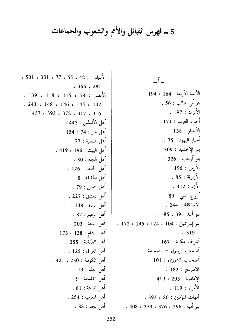 5- فهرس القبائل والأمم والشعوب والجماعات
