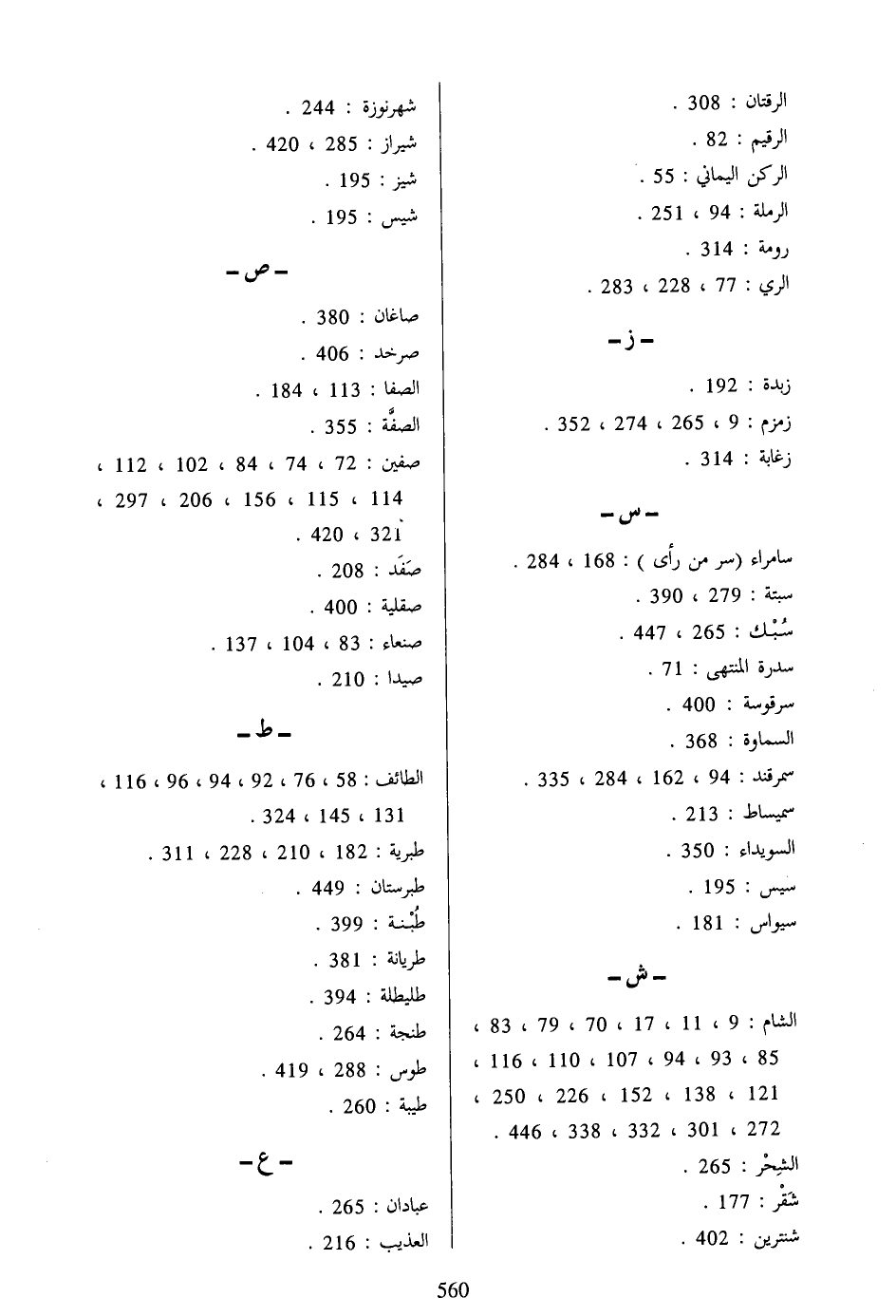 الشام: 9، 11، 17، 70، 79، 83، 85، 93، 94، 107، 110، 116، 121، 138، 152، 226، 250، 272، 301، 332، 338، 446.