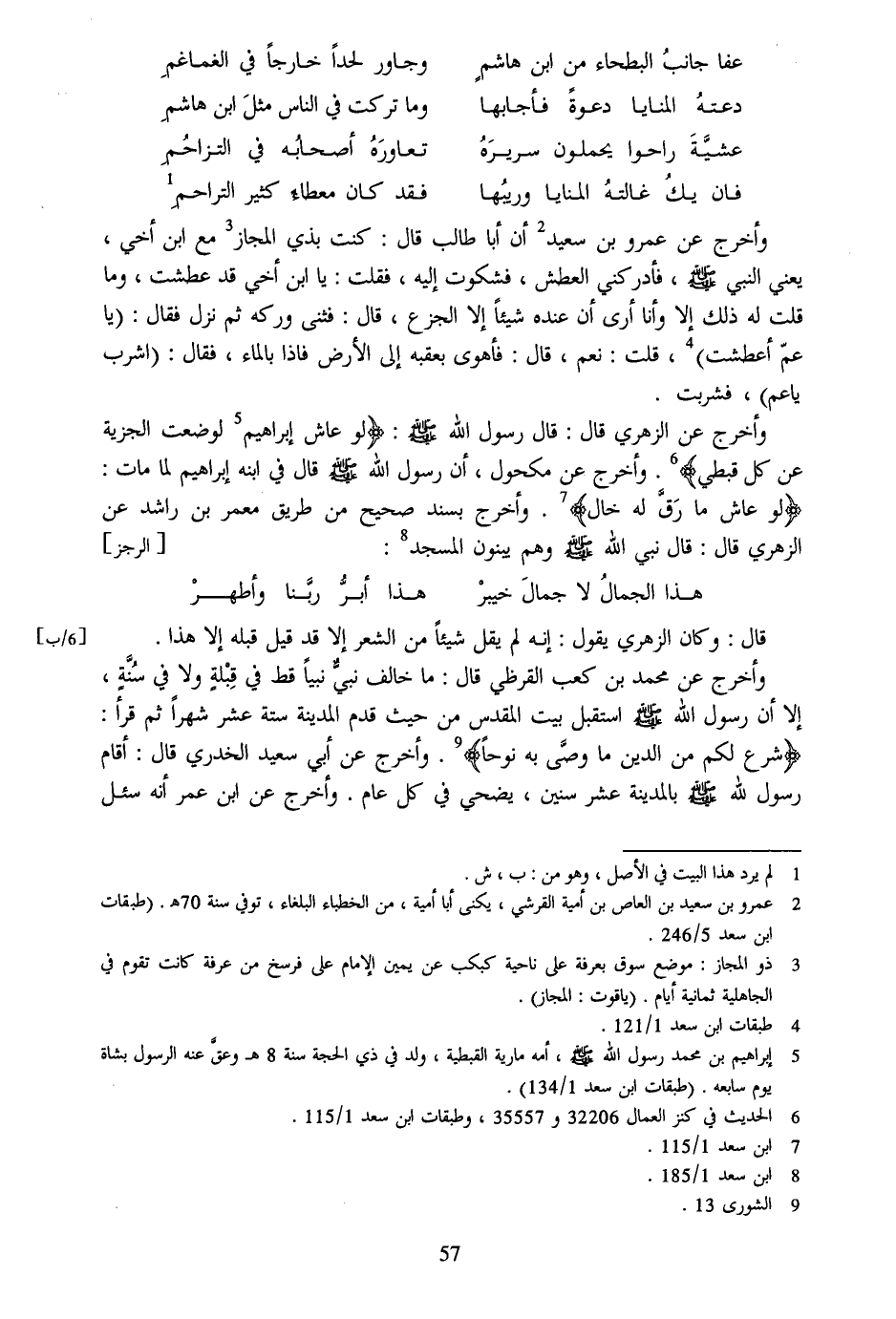 [6] الحديث في كنز العمال 32206 و 35557، وطبقات ابن سعد 1/115.
