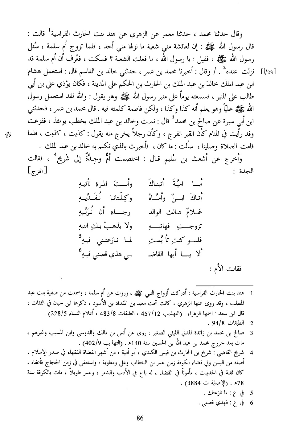 [1] هند بنت الحارث الفراسية: أدركت أزواج النبي صلّى الله عليه وسلم، وروت عن أم سلمة، وسمعت من صفية بنت عبد المطلب، وقد روى عنها الزهري، كانت تحت معبد بن المقداد بن الأسود، ذكرها ابن حبان في الثقات، قال ابن سعد: اسمها الزهراء. (التهذيب 12/457، الطبقات 8/483، أعلام النساء 5/228) .