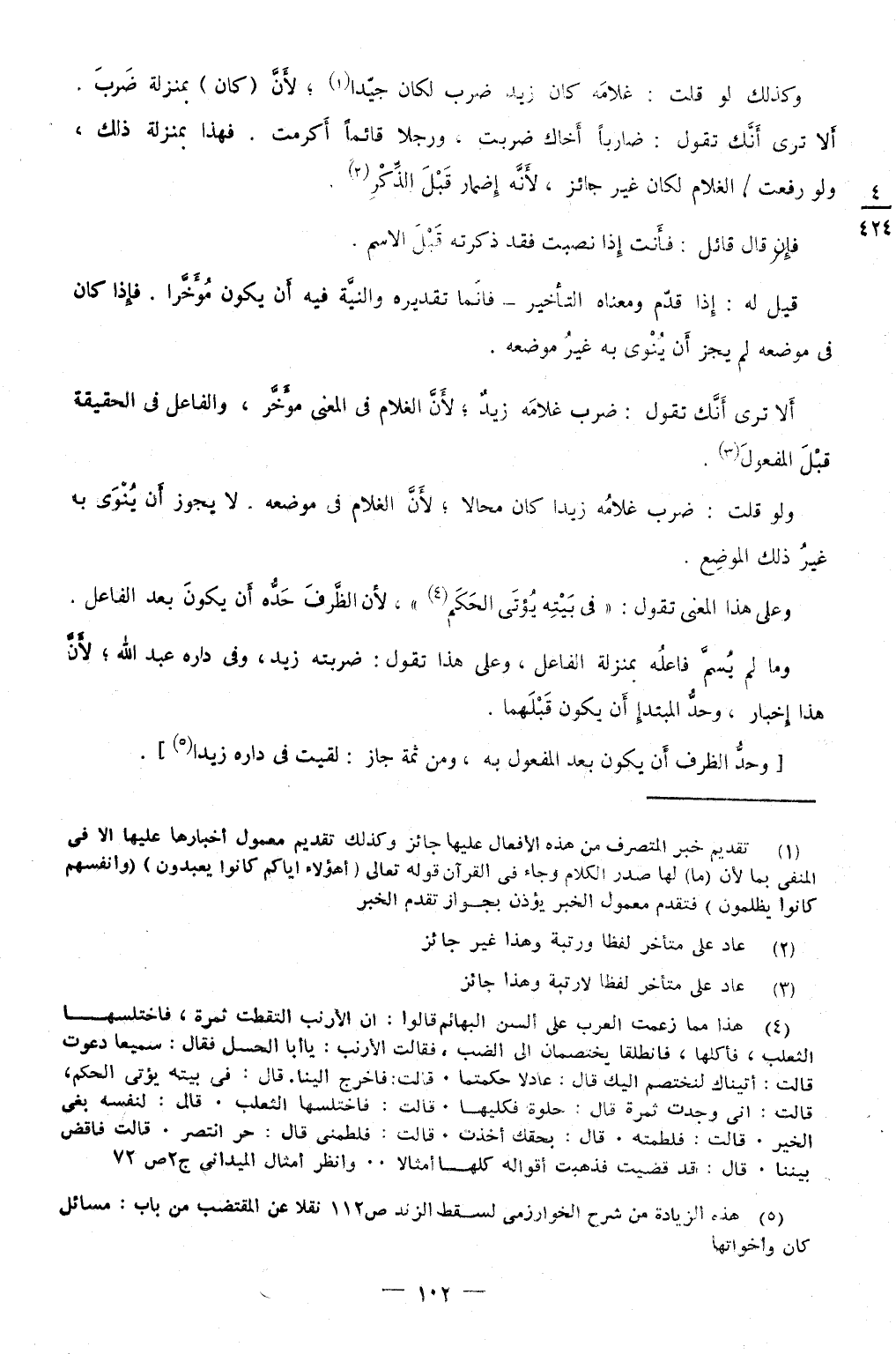 أَلا ترى أَنَّك تَقول ضرب غُلَامه زيد لِأَن الْغُلَام فِي الْمَعْنى مُؤخر وَالْفَاعِل فِي الْحَقِيقَة قبل الْمَفْعُول