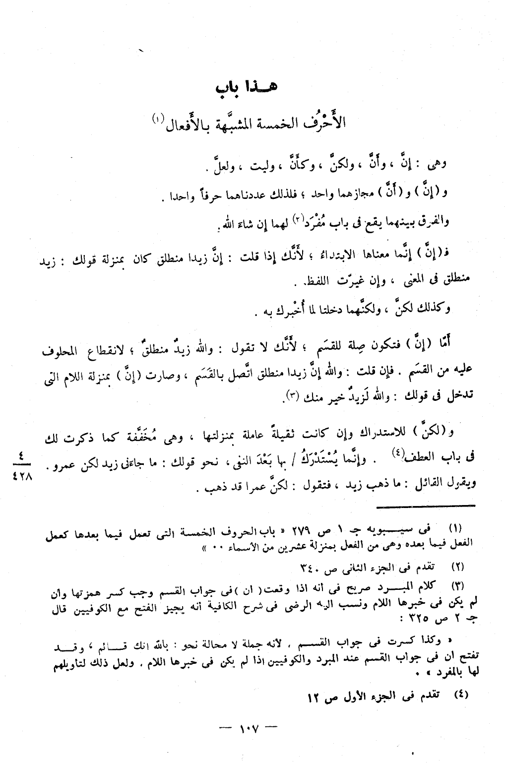 هَذَا بَاب الأحرف الْخَمْسَة المشبهة بالأفعال