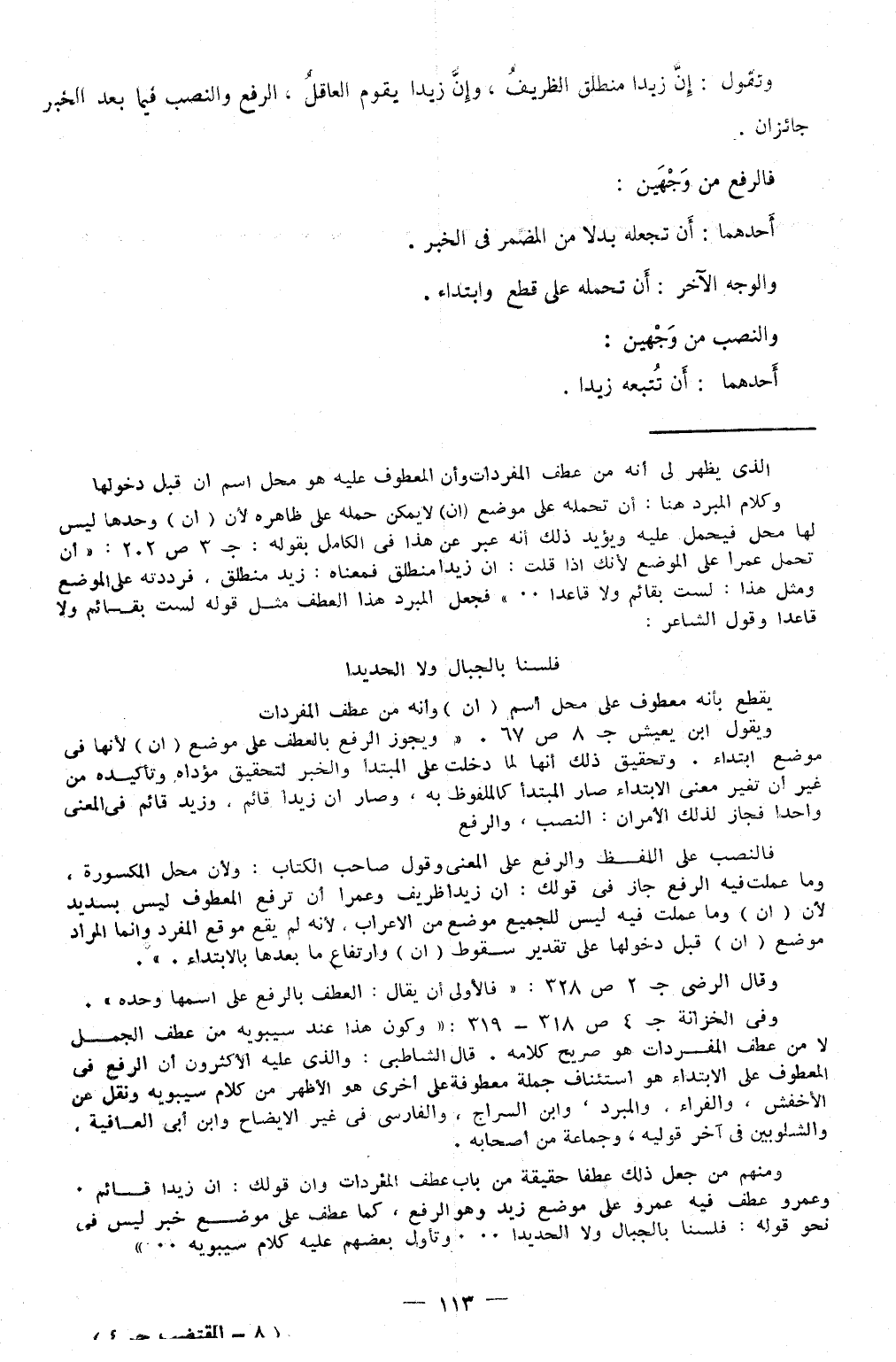 وَالنّصب من وَجْهَيْن أَحدهمَا أَن تتبعه زيدا