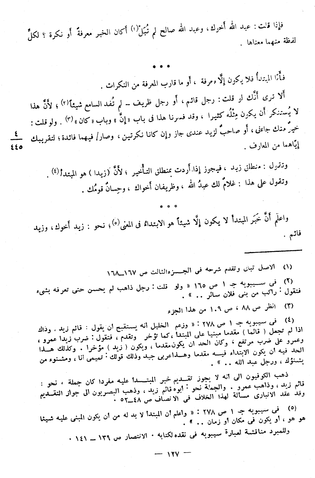 وَاعْلَم أَن خبر الْمُبْتَدَأ لَا يكون إِلَّا شَيْئا هُوَ الِابْتِدَاء فِي الْمَعْنى نَحْو زيد أَخُوك وَزيد قَائِم
