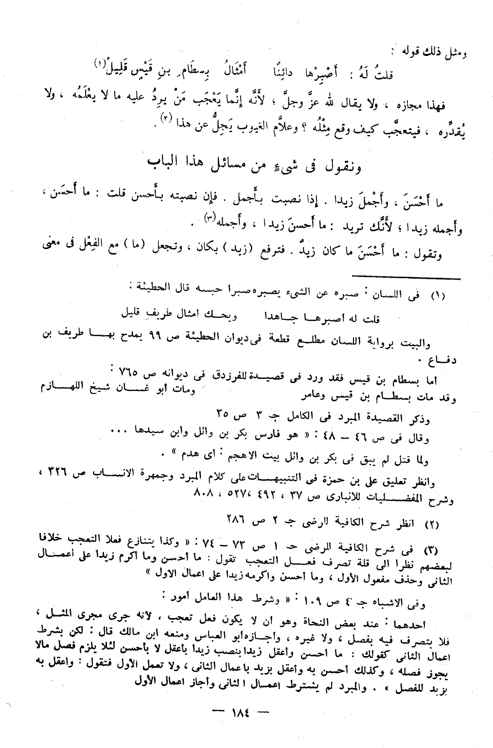 مَا أحسن وأجمل زيدا إِذا نصبت بأجمل فَإِن نصبته بِأَحْسَن قلت مَا أحسن وأجمله زيدا لِأَنَّك تُرِيدُ مَا أحسن زيدا وأجمله