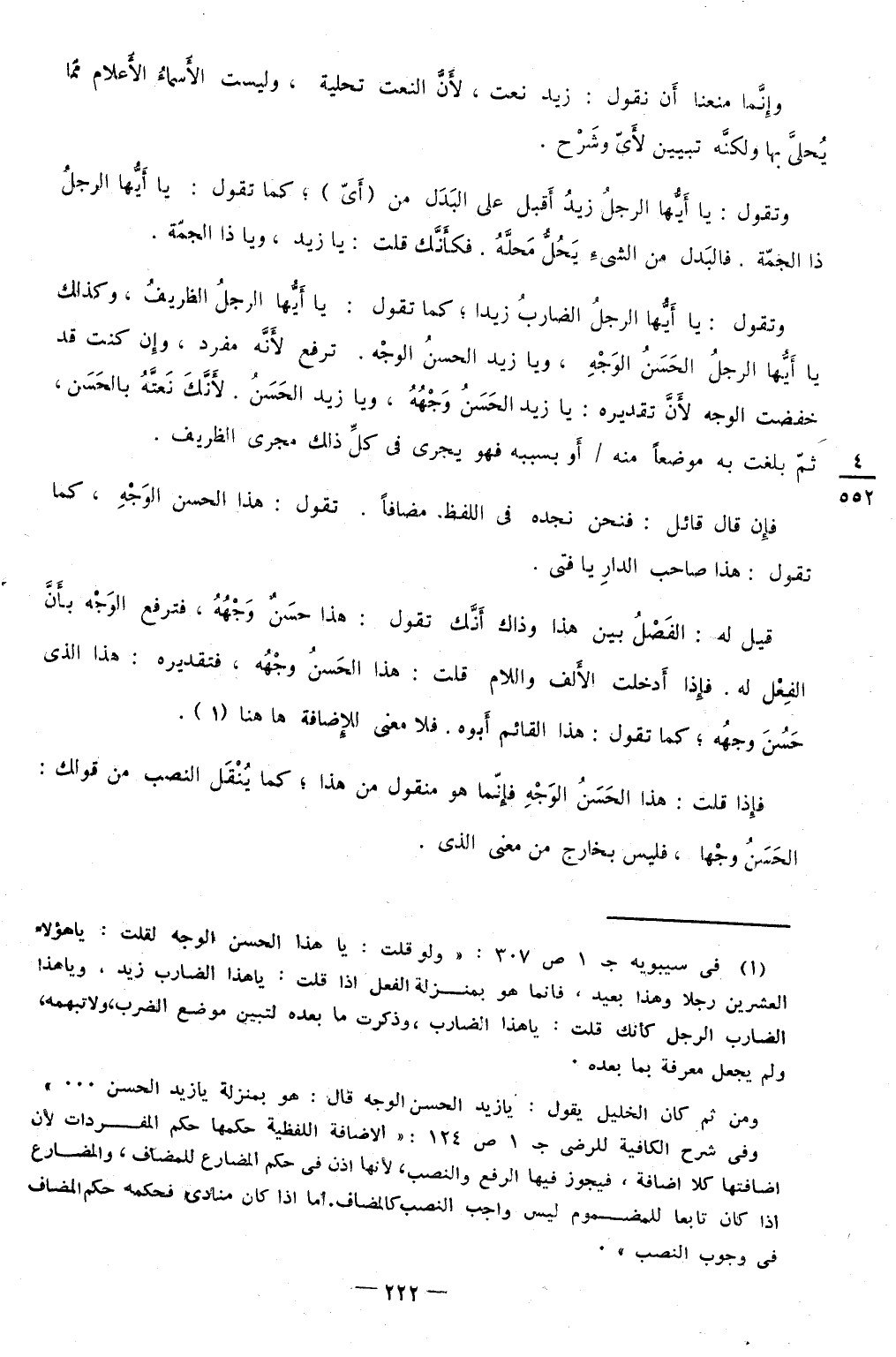 فَإِن قَالَ قَائِل فَنحْن نجده فِي اللَّفْظ مُضَافا تَقول هَذَا الْحسن الْوَجْه كَمَا تَقول هَذَا صَاحب الدَّار يَا فَتى