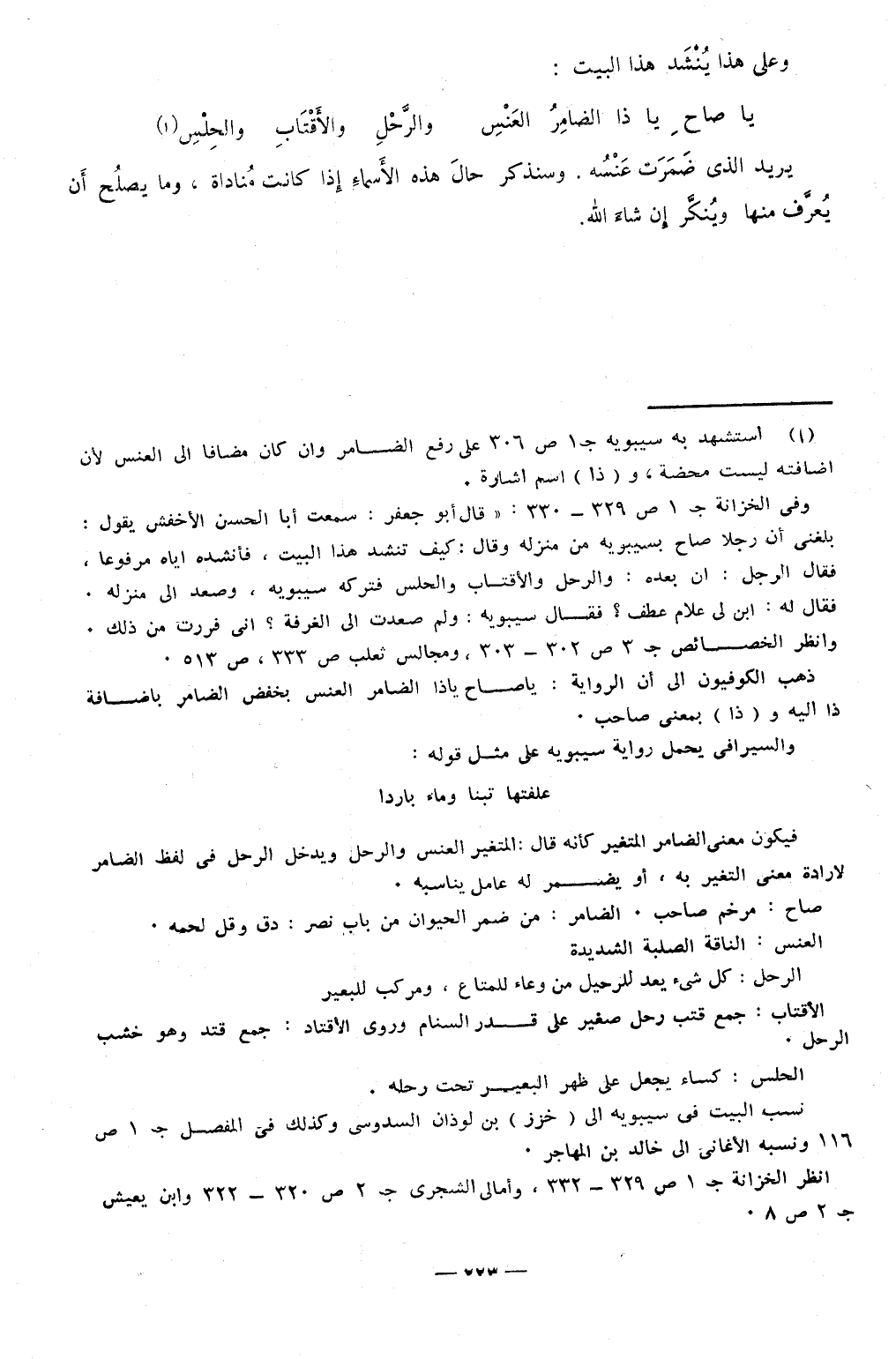 (يَا صاحِ يَا ذَا الضامِرُ العَنْسِ ... والرَّحْلِ والأَقْتَابِ والحِلْسِ)