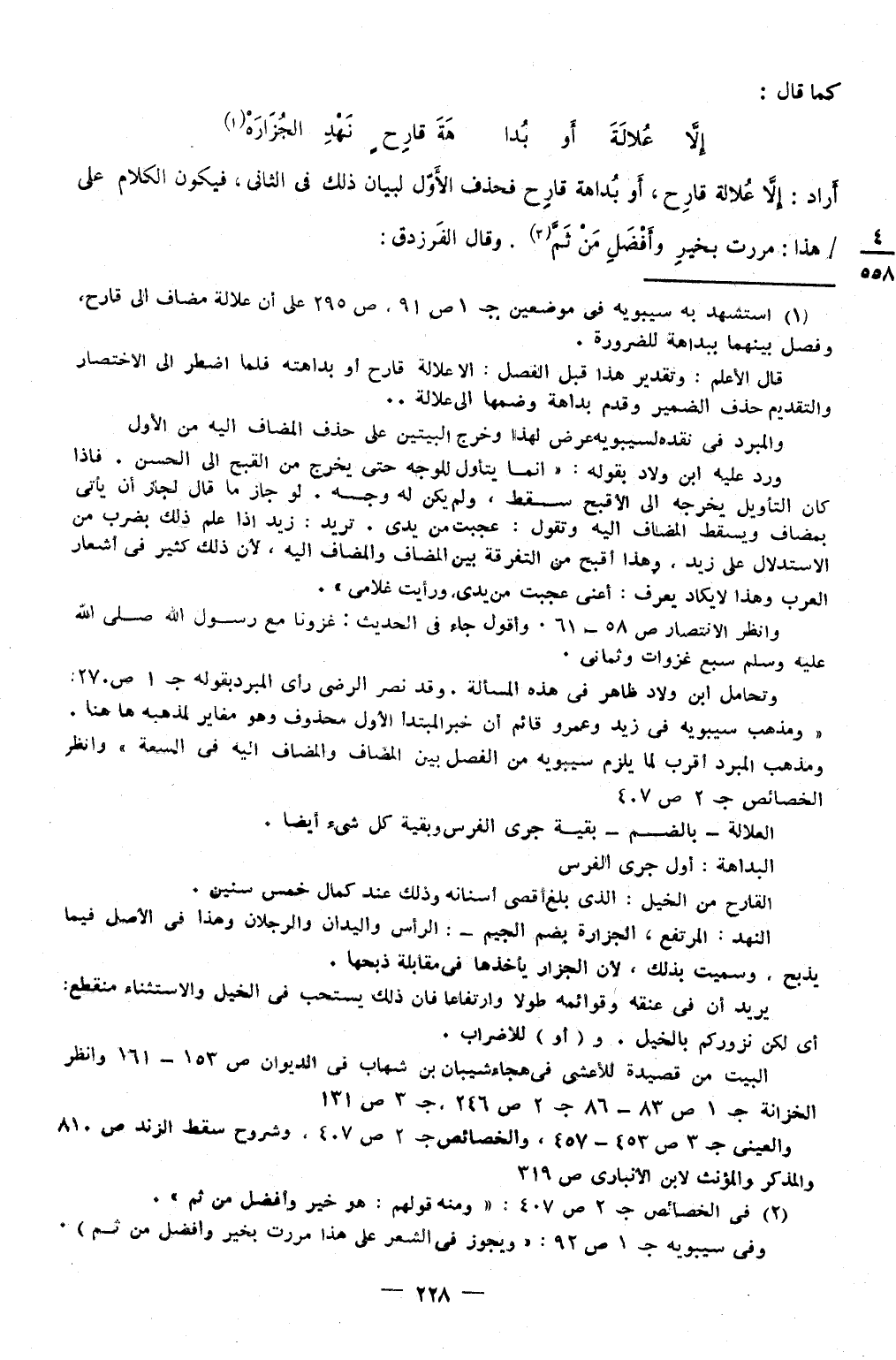 (إِلاَّ عُلالَةَ أَو بُداهَةَ ... قارِحٍ نَهْدِ الجُزَارَهْ)