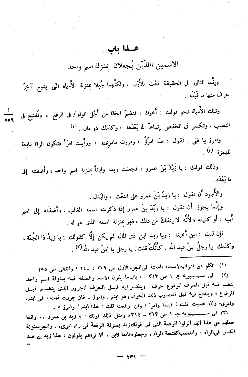 فَإِن قلت ابْن أخينا وَيَا زيد ابْن ذِي المَال لم يكن إِلَّا كَقَوْلِك يَا زيد ذَا الجمة وَكَذَلِكَ يَا رجل ابْن عبد الله كَأَنَّك قلت يَا رجل يَا ابْن عبد الله
