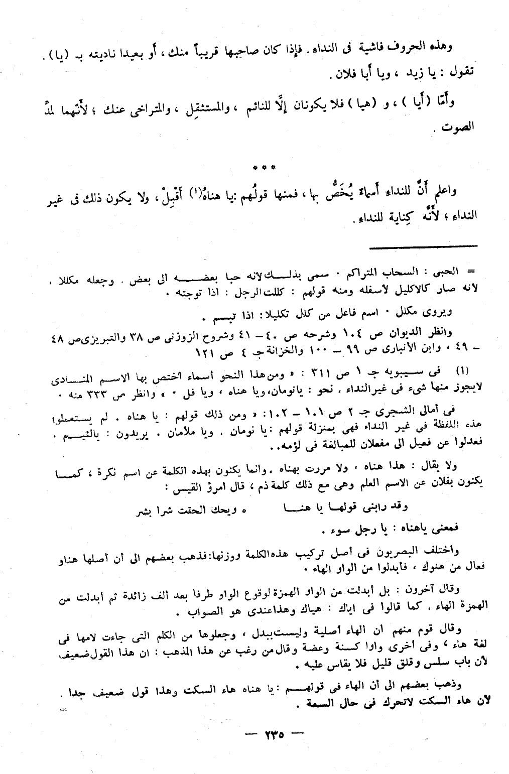 وَهَذِه الْحُرُوف فَاشِية فِي النداء فَإِذا كَانَ صَاحبهَا قَرِيبا مِنْك أَو بَعيدا ناديته ب (يَا) تَقول يَا زيد وَيَا أَبَا فلَان