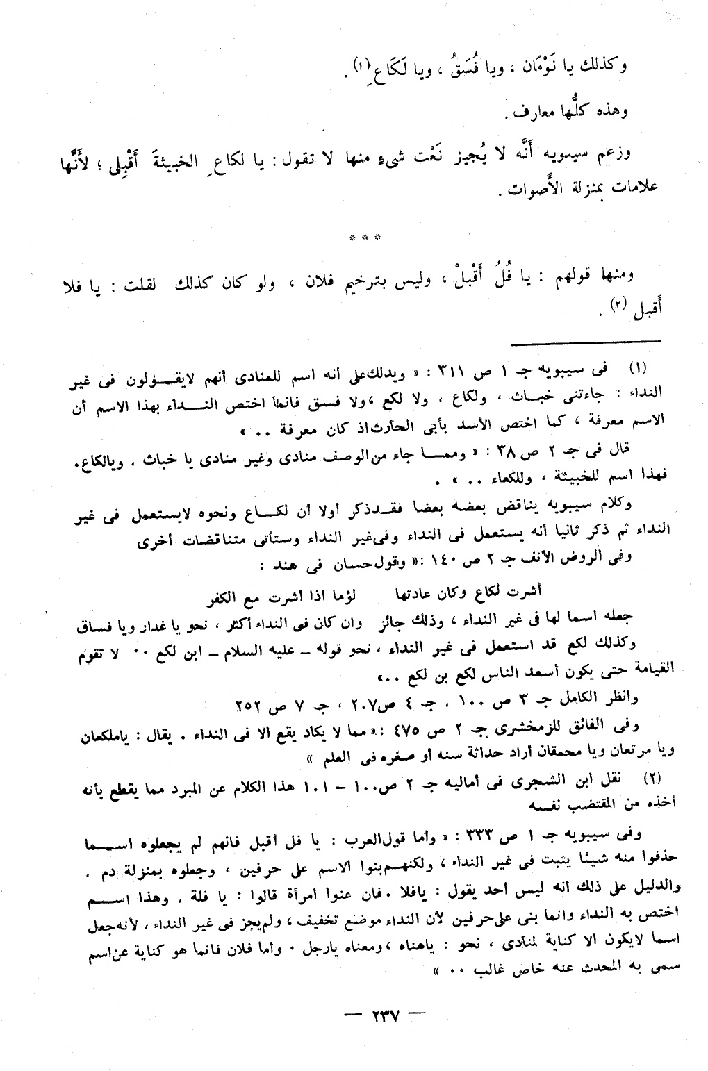 وَمِنْهَا قَوْلهم يَا فل أقبل وَلَيْسَ بترخيم فلَان وَلَو كَانَ كَذَلِك لَقلت يَا فلَان أقبل
