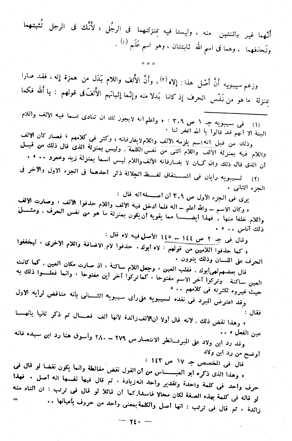وَزعم سِيبَوَيْهٍ أَن أصل هَذَا إلاه وَأَن الْألف وَاللَّام بدل من همزَة إِلَه فقد صَارا بِمَنْزِلَة مَا هُوَ من نفس الْحَرْف إِذْ كَانَا بَدَلا مِنْهُ وَإِنَّمَا إثباتهم الْألف فِي قَوْلهم يَا ألله فَكَمَا