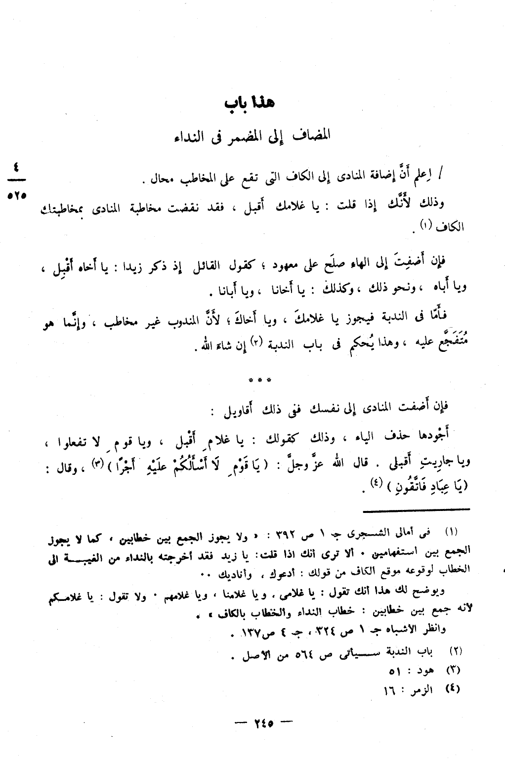 اعْلَم أَن إِضَافَة المنادى إِلَى الْكَاف الَّتِي تقع على الْمُخَاطب محَال