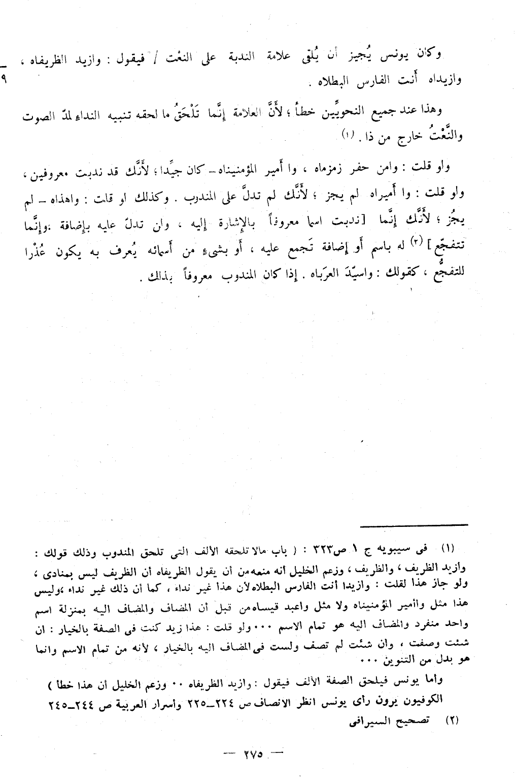 وَكَانَ يُونُس يُجِيز أَن يلقِي عَلامَة الندبة على النَّعْت فَيَقُول وازيد الظريفاه وازيداه أَنْت الْفَارِس البطلاه