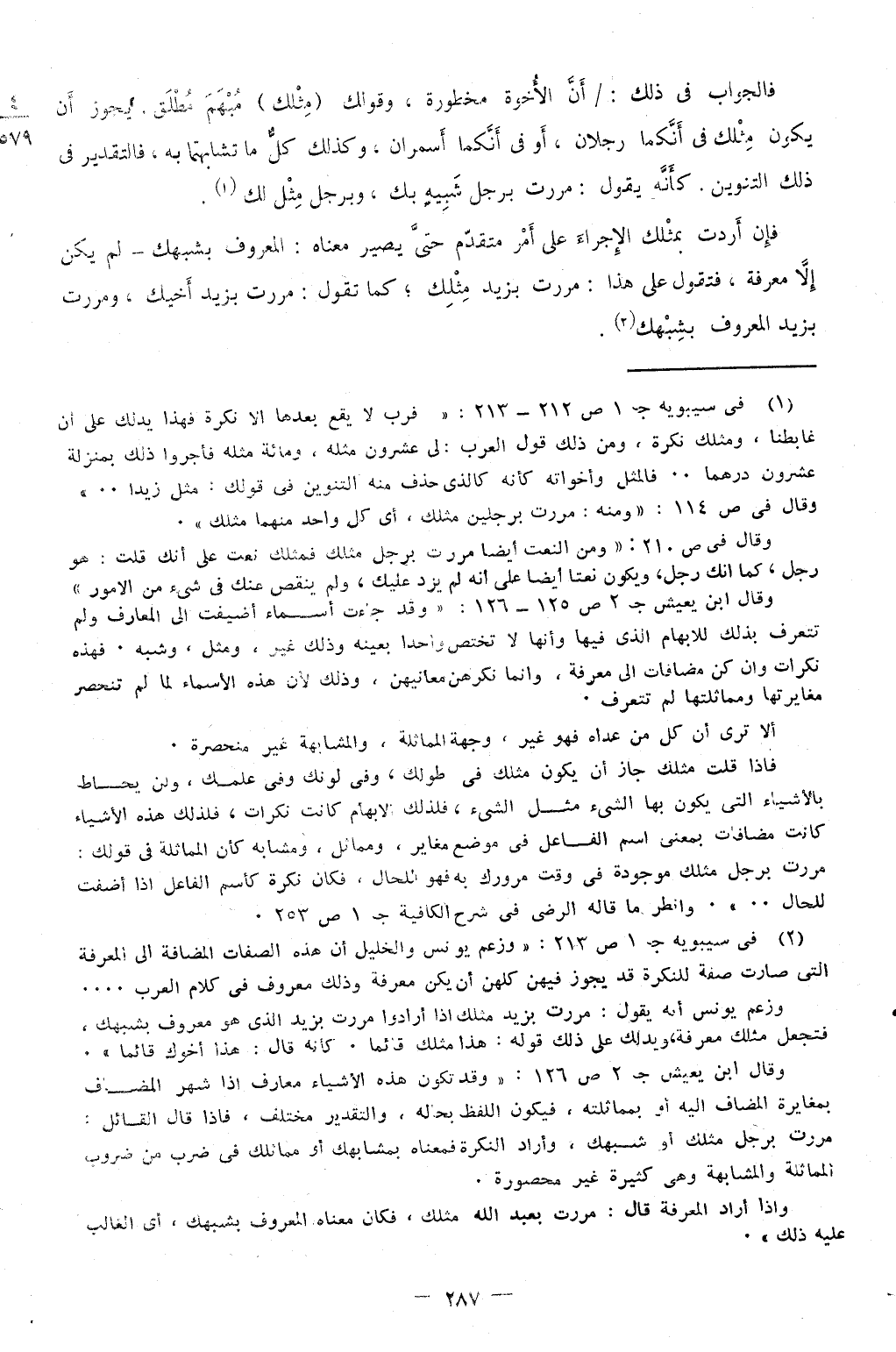فَإِن أردْت بمثلك الإجراء على أَمر مُتَقَدم حَتَّى يصير مَعْنَاهُ الْمَعْرُوف بشبهك لم يكن إِلَّا معرفَة فَتَقول على هَذَا مَرَرْت بزيد مثلك كَمَا تَقول مَرَرْت بزيد أَخِيك ومررت بزيد الْمَعْرُوف بشبهك