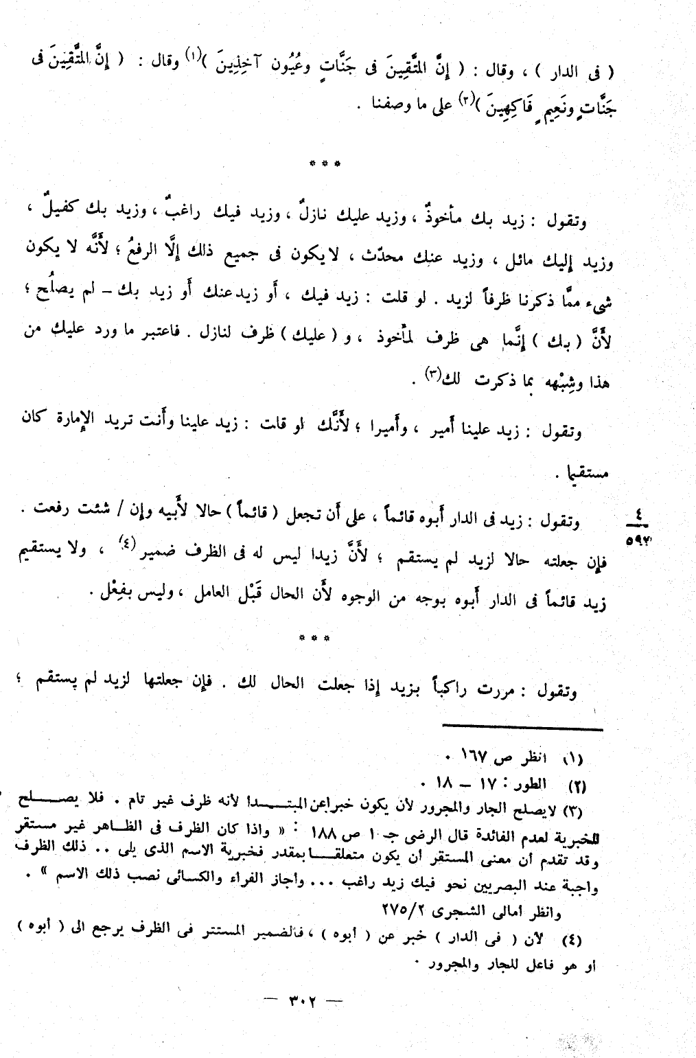 وَتقول زيد بك مَأْخُوذ وَزيد عَلَيْك نَازل وَزيد فِيك رَاغِب وَزيد بك كَفِيل وَزيد إِلَيْك مائل وَزيد عَنْك مُحدث لَا يكون فِي جَمِيع ذَلِك إِلَّا الرّفْع لِأَنَّهُ لَا يكون شَيْء مِمَّا اذكرنا ظرفا لزيد لَو قلت زيد فِيك أَو زيد عَنْك أَو زيد بك لم يصلح لِأَن بك إِنَّمَا هِيَ ظرف لمأخوذ وَعَلَيْك ظرف لنازل فَاعْتبر مَا ورد عَلَيْك من هَذَا وَشبهه بِمَا ذكرت لَك