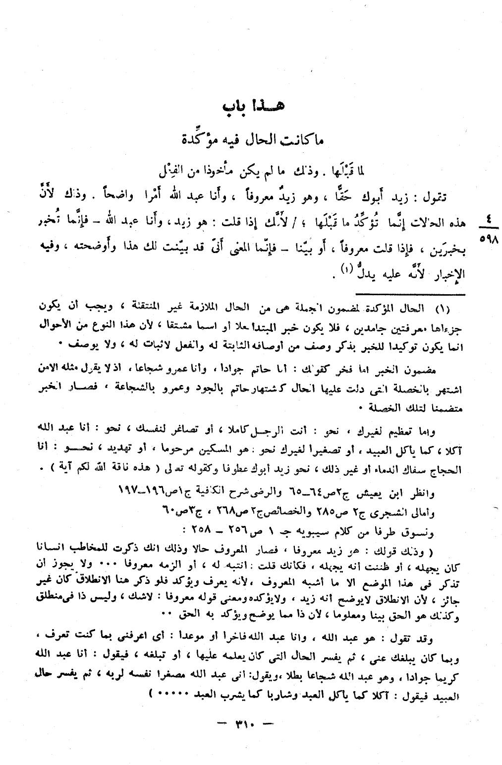 (هَذَا بَاب مَا كَانَت الْحَال فِيهِ مُؤَكدَة لما قبلهَا وَذَلِكَ مَا لم يكن مأخوذا من الْفِعْل)
