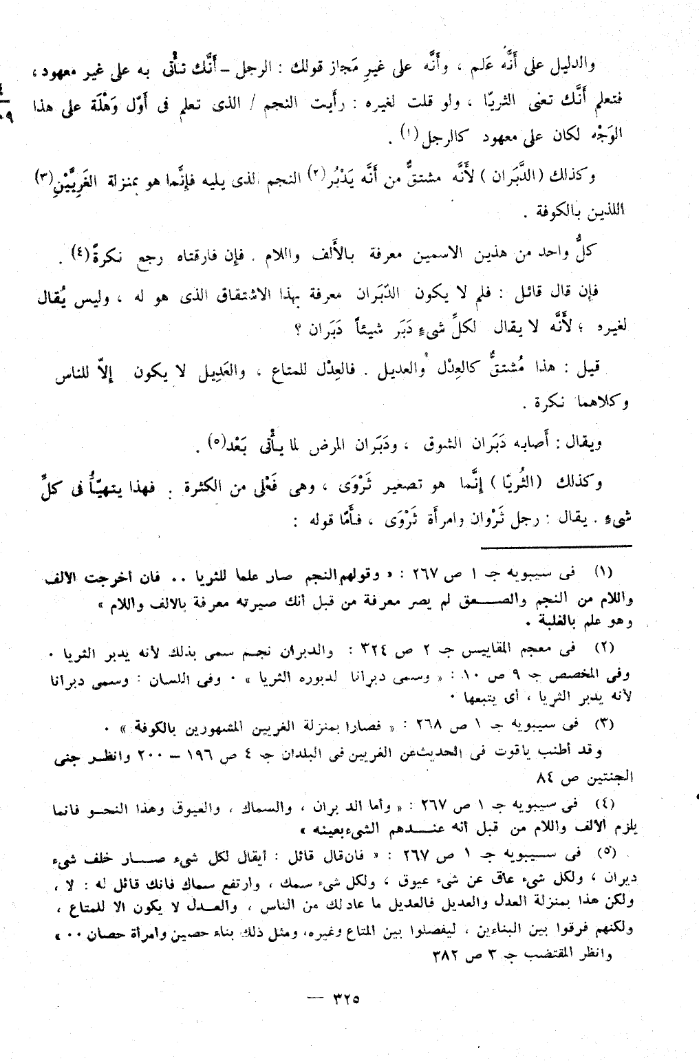 وَكَذَلِكَ الدبران لِأَنَّهُ مُشْتَقّ من أَنه يدبر النَّجْم الَّذِي يَلِيهِ فَإِنَّمَا هُوَ بِمَنْزِلَة الغريين اللَّذين بِالْكُوفَةِ