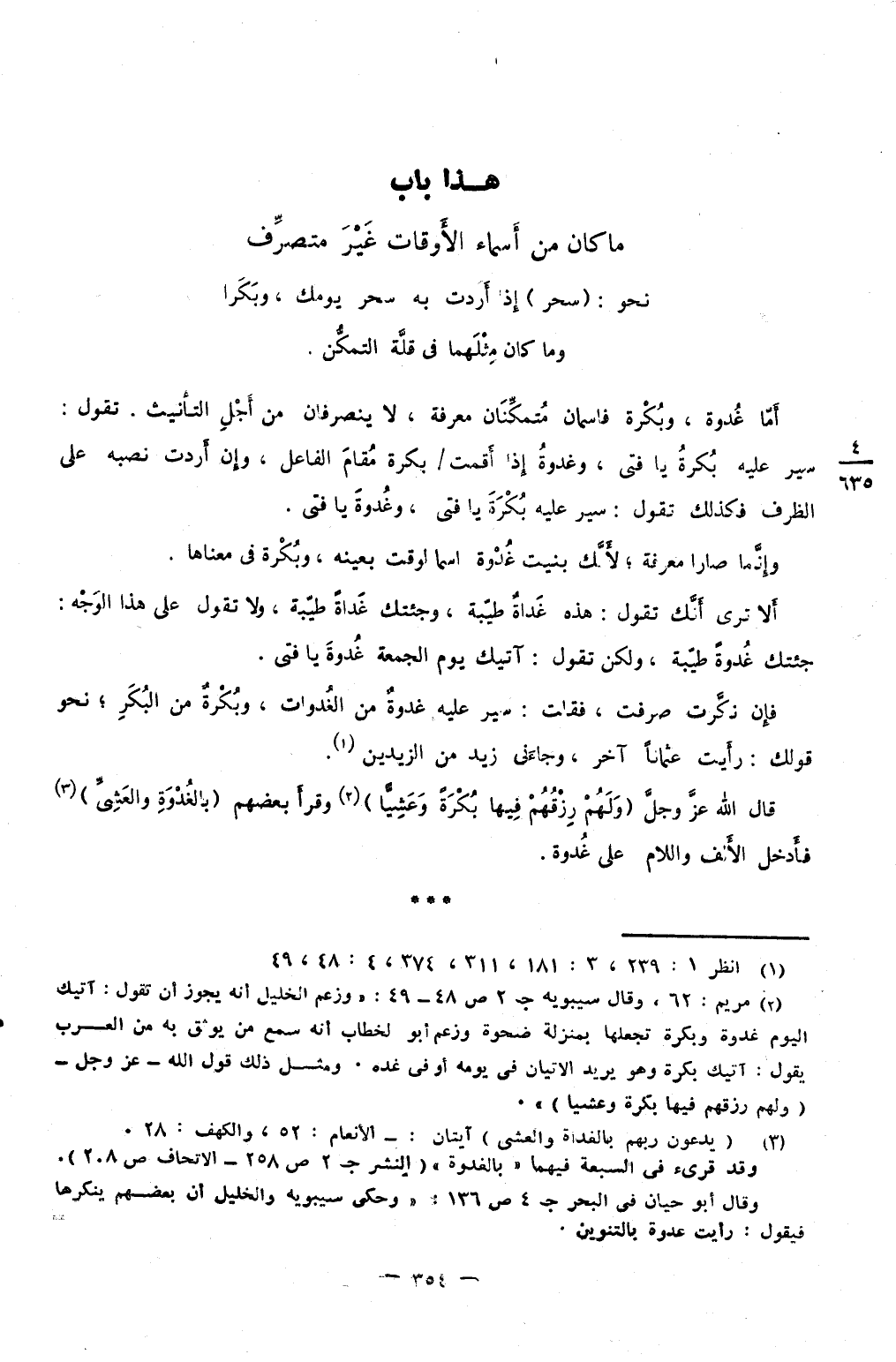 أَلا ترى أَنَّك تَقول هَذِه غَدَاة طيبَة وجئتك غَدَاة طيبه وَلَا تَقول على هَذَا الْوَجْه جئْتُك غدْوَة طيبَة وَلَكِن تَقول آتِيك يَوْم الْجُمُعَة غدْوَة يَا فتي