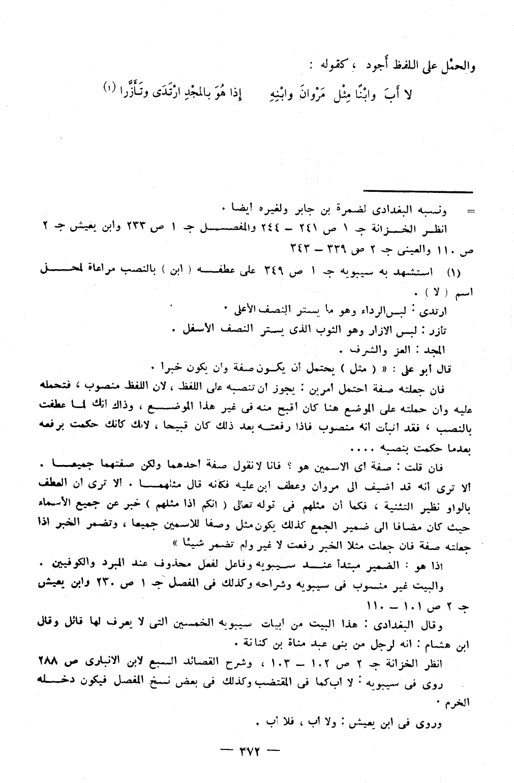 (لَا أَبَ وابْناً مِثْل مَرْوانَ وابْنِهِ ... إِذا هُوَ بالمجْدِ ارْتَدَى وتَأَزَّرا)