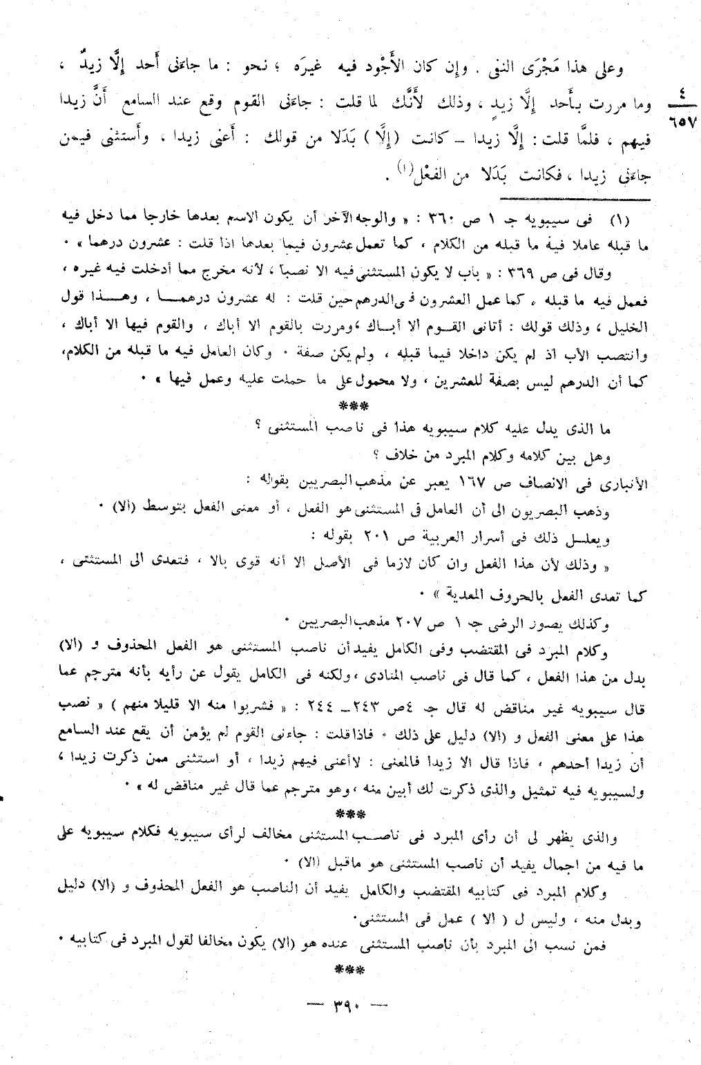 وعَلى هَذَا مجْرى النَّفْي وَإِن كَانَ الْجُود فِيهِ غَيره نَحْو مَا جَاءَنِي أحد إِلَّا زيد وَمَا مَرَرْت بِأحد إِلَّا زيد وَذَلِكَ لِأَنَّك لما قلت جَاءَنِي الْقَوْم وَقع عِنْد السَّامع أَن زيدا فيهم فَلَمَّا قلت إِلَّا زيدا كَانَت إِلَّا بَدَلا من قَوْلك أَعنِي زيدا وَاسْتثنى فِيمَن جَاءَنِي زيدا فَكَانَت بَدَلا من الْفِعْل