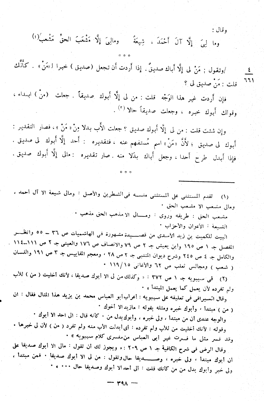 (وَمَا لِيَ آلَ أَحمَدَ شِيعَةٌ ... ومالِيَ إِلاَّ مَشْعَبَ الحقِّ مَشْعبُ)