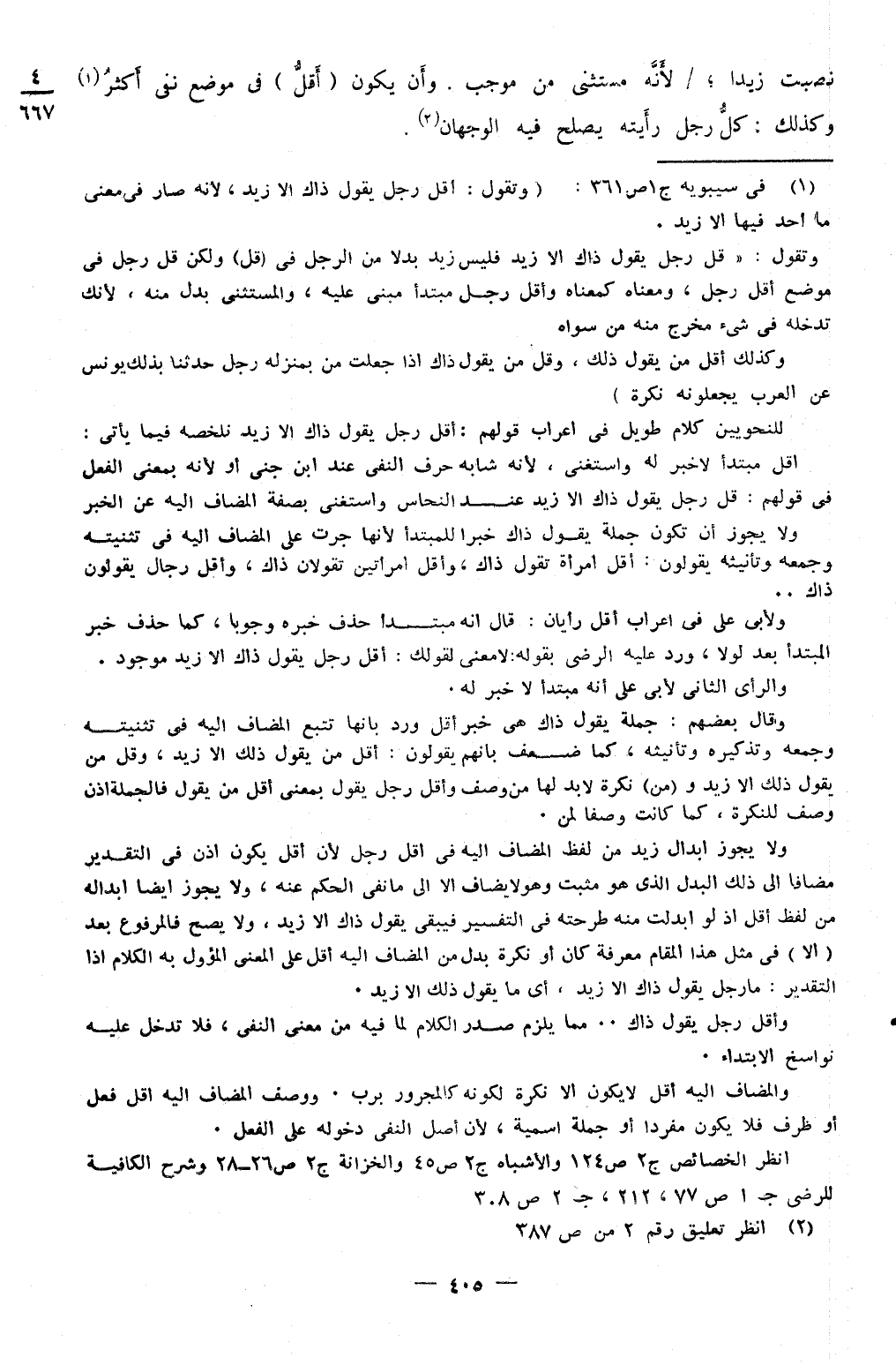 نصبت زيدا لِأَنَّهُ مُسْتَثْنى من مُوجب وَأَن يكون أقل فِي مَوضِع نفي أَكثر وَكَذَلِكَ كل رجل رَأَيْته يصلح فِيهِ الْوَجْهَانِ