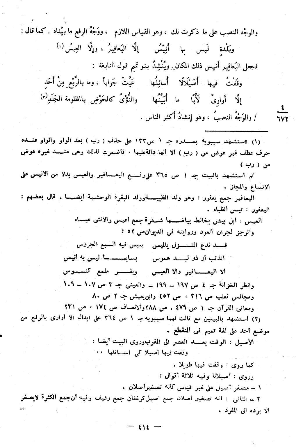 (وبَلْدةٍ لَيس بهَا أَنِيْسُ ... إِلاَّ اليَعافِيرُ وإِلاَّ العِيسُ)