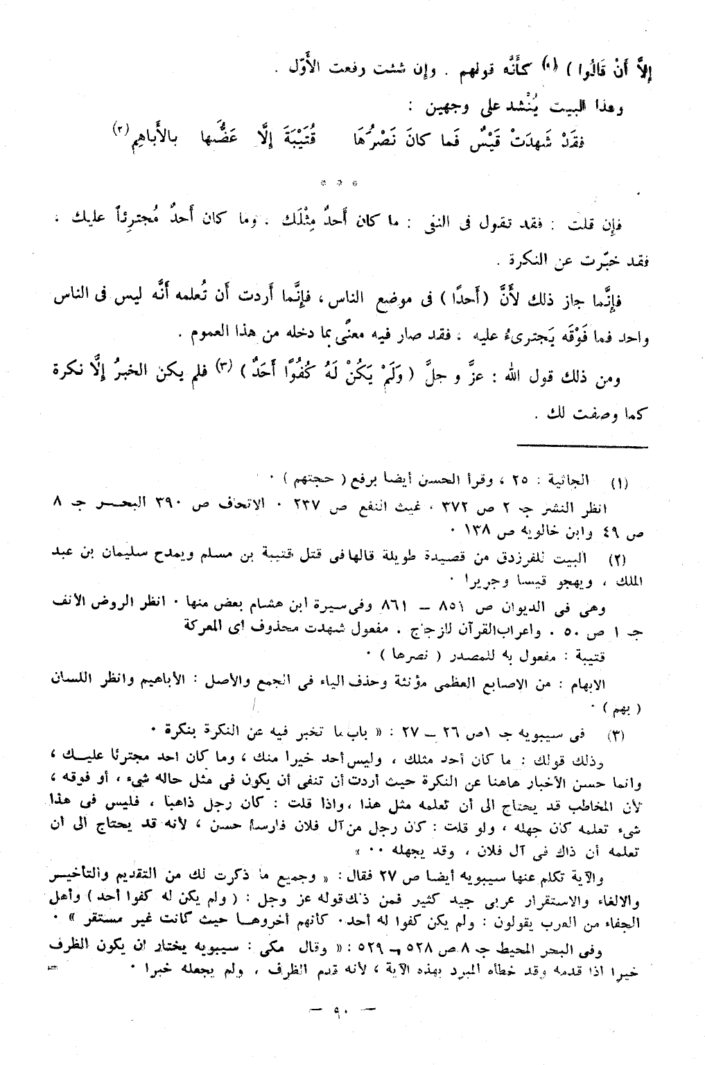 فَإِنَّمَا جَازَ ذَلِك لِأَن أحدا فِي مَوضِع النَّاس فَإِنَّمَا أردْت أَن تعلمه أَنه لَيْسَ فِي النَّاس وَاحِد فَمَا فَوْقه يجترئ عَلَيْهِ فقد صَار فِيهِ معنى بِمَا دخله من هَذَا الْعُمُوم