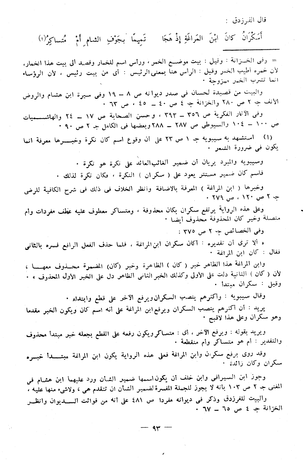 (أَسَكْرَانُ كانَ ابْنَ المَراغَةِ إِذْ هَجاَ ... تَمِيمًا بجَوْفِ الشامِ أَمْ مُتساكِرُ)